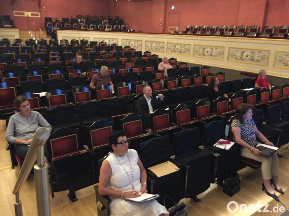 Im Stadttheater tagte der Kulturausschuss am Dienstagnachmittag. Das Gremium bekam dabei gleich einen persönlichen Eindruck, was sich fürs Publikum ändern wird, nachdem dort nach der Corona-Zwangspause jetzt wieder Veranstaltungen laufen können: Jede zweite Sitzreihe muss frei bleiben, ebenso drei Sitzplätze zwischen Besuchern, die nicht aus einem Haushalt kommen. Schwarze Hussen, die über die "gesperrten" Sitze gestülpt werden, zeigen, was frei bleiben muss.