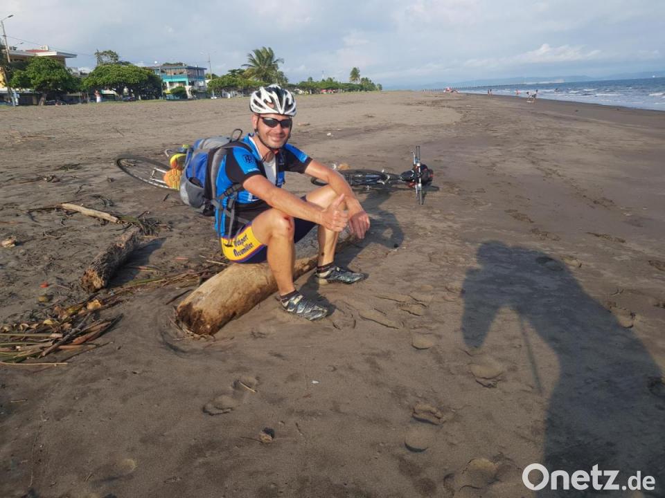 Diese Brise weht die beiden Radfahrer an den Pazifik, der aber noch ein gutes Stück entfernt ist. 60 Kilometer der Strecke fahren sie auf dem Panamerican Highway, der wichtigsten Nord-Süd-Route von Alaska nach Feuerland. Es ist heiß und der Verkehr ist überwältigend. „Vor allem die Megatrucks, die man aus amerikanischen Filmen kennt, bremsen für nichts und niemanden. Wir musste höllisch aufpassen, um auf dem äußersten rechten Straßenrand zu bleiben“, erinnert sich Jürgen Langhans, „Zum Glück gibt’s eine Menge Bars entlang des Highways, die wir liebend gern angesteuert haben, um uns mit einem kühlen Drink zu erfrischen. Überhaupt sind allein die mit frischen Früchten gemischten Cocktails die Reise nach Costa Rica wert. Ich bin fast süchtig geworden nach den Kokosnuss-Cocktails.“ In Puntarenas am Meer erreicht die Hitze ihren Höhepunkt. Das Atmen fällt beiden schwer, sie kommen die letzten Kilometer nur noch im Schneckentempo voran. „Das klimatisierte Zimmer war das Highlight des Tages“, erzählt der Berufsschullehrer. Erst abends gehen die beiden bei erträglichen Temperaturen wieder raus ans Meer. „Ich habe Kokosnüsse aus dem Wasser gefischt, sie auf die Felsen geschleudert und dann das schneeweiße Fruchtfleisch gegessen. Das war genial.“