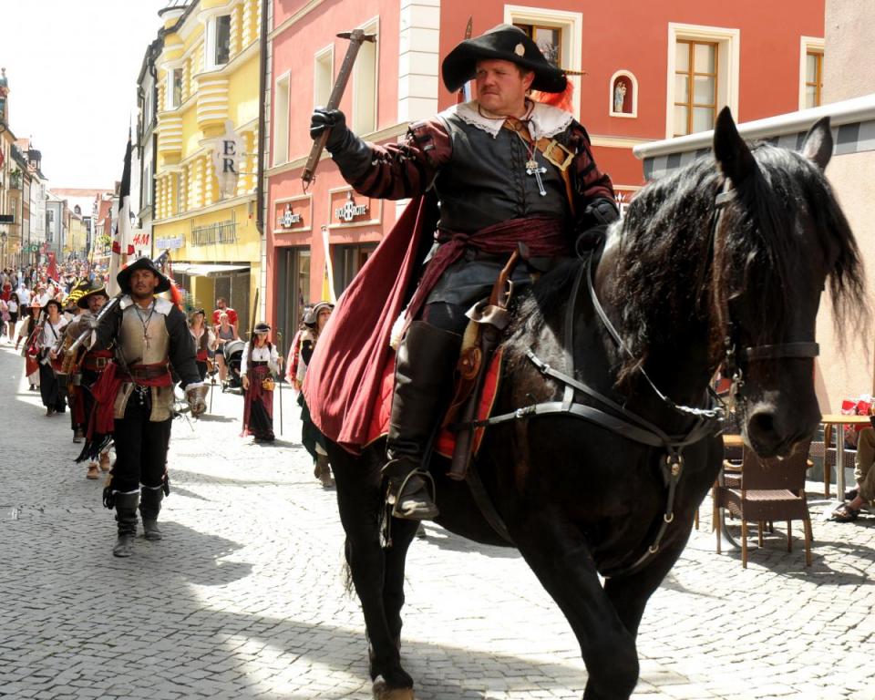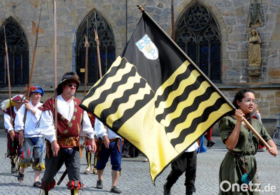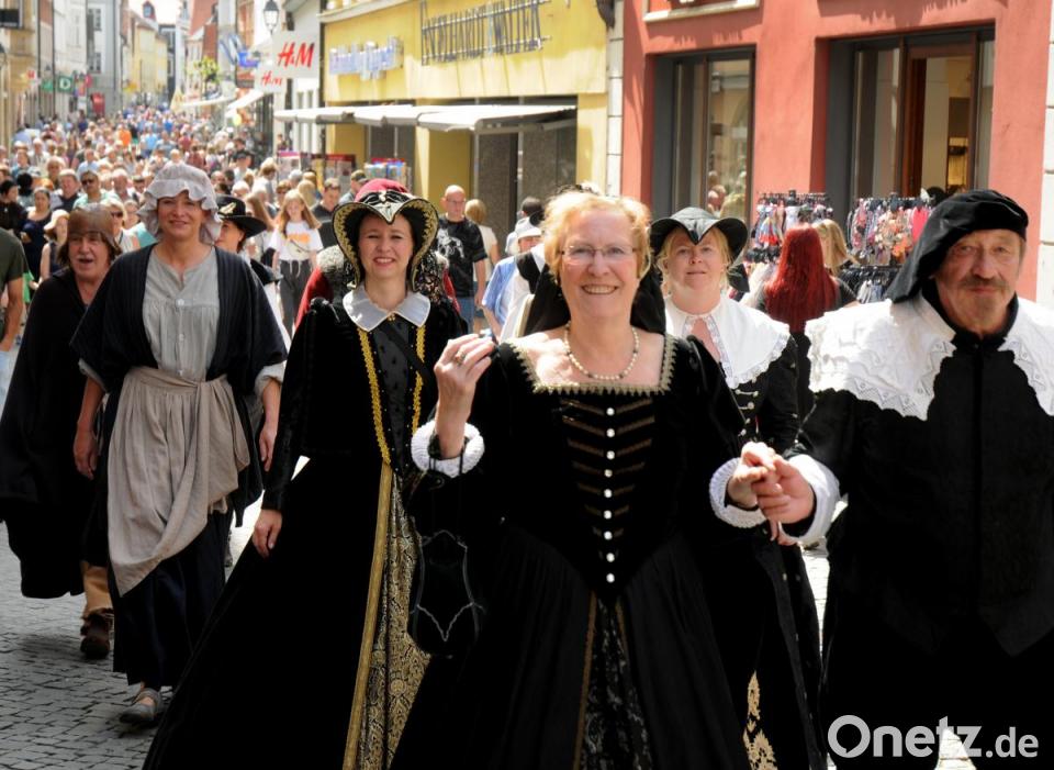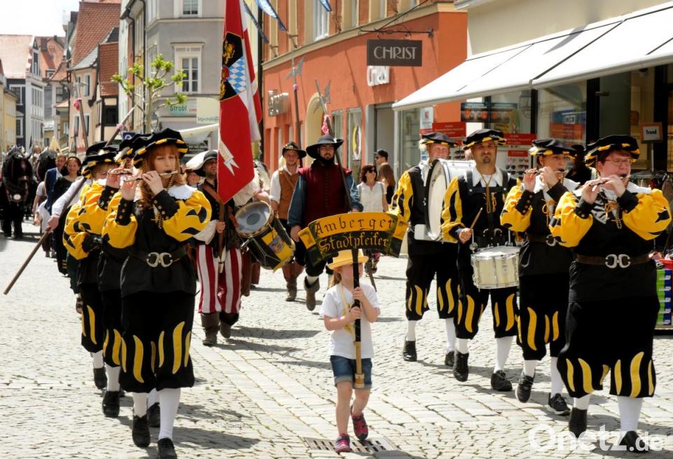 Die historischen Gruppen, die teilweise bis aus Altdorf und Pressath gekommen waren, zogen am Samstagnachmittag von ihrem Lager zum Marktplatz. Mit von der Partie war der adelige Ehrengast: Eduard Prinz von Anhalt-Askanien und Herzog von Sachen. Der 77-Jährige ist ein Cousin des britischen Thronfolgers Charles. Er war bereits am Freitag in Begleitung seiner Tochter Julia Katharina (Erbprinzessin von Anhalt) und deren ältesten Sohn Maxime (8) angereist. Die Nächte verbrachte der heutige Chef des Hauses Anhalt-Askanien in der Fronfeste. Er ist ein Nachfahre von Fürst Christian von Anhalt. Dieser war 1595 als Statthalter der Oberpfalz in den Dienst von Kurfürst Friedrichs IV. von der Pfalz getreten und residierte in Amberg.