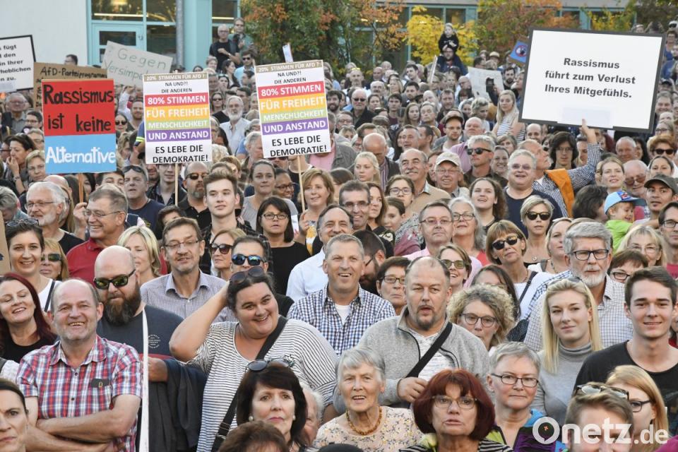 Die fantasievollen Sprüche auf den zur Schau gestellten Bannern waren gespickt mit Spitzen auf die AfD und hatten vor allem auch Witz. So zum Beispiel „Die einzige braune Flasche, die wir akzeptieren“ – und mit auf dem Bild die Bierflasche einer örtlichen Brauerei.