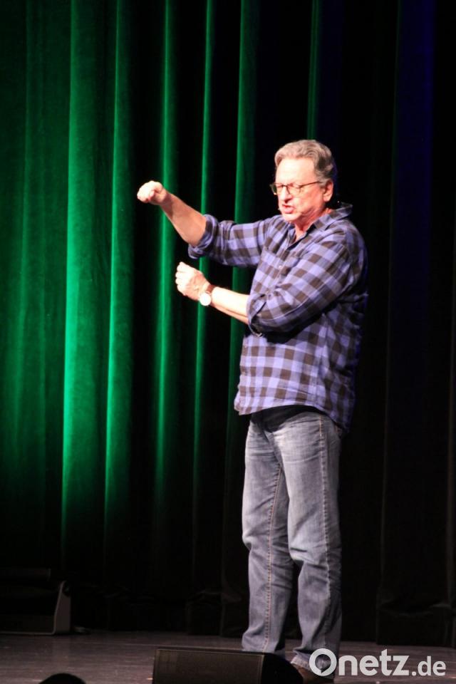Offensichtlich der Bakterienübertragung in der Obsttheke zum Opfer gefallen, überspielt der Komiker gekonnt den einen oder anderen Frosch im Hals oder wie er es nennt, seinen "grippalen Defekt", was der One-Man-Show jedoch keinen Abbruch tat.