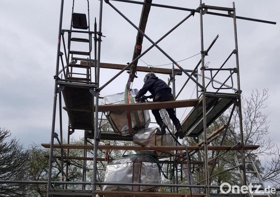 Das gestellte Thema „Deutsch-Amerikanische Freundschaft“, das Bezug nimmt auf den ehemals von der US-Army geprägten Standort im Amberger Süden war zwar fix, die politische Lage dagegen war es nicht. Nicht zuletzt die turbulenten und erschreckenden letzten Wochen der Präsidentschaft Donald Trumps hinterließen bei der Bildhauerin ein starkes Gefühl von Instabilität, das sie wiederum direkt auf die Arbeit an der Skulptur übertrug.
