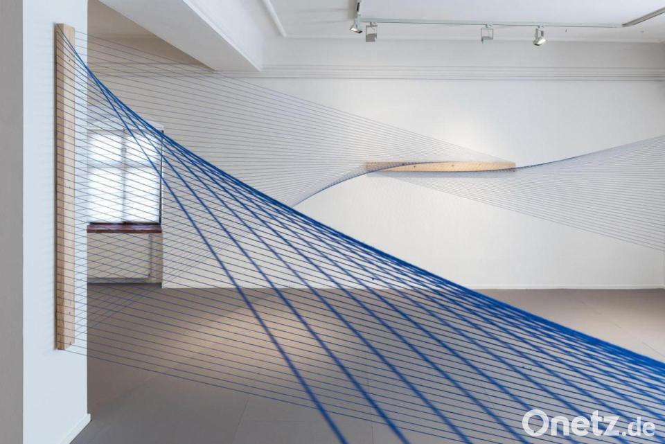 Die Ausstellung „Luftlinie“ von Heiko Börner im Erdgeschoss des Museums zeigt Installationen, die dem Prinzip der kürzesten Verbindung zwischen zwei Punkten folgen. Materiallinien aus Kunststoff oder Wolle formen imaginäre Raumkörper, ergänzt durch Holzskulpturen, die Wände in räumliche Sphären verwandeln. Börner, geboren 1973 in Arnstadt, ist ausgebildeter Holzbildhauer und studierte Bildhauerei an der Akademie der bildenden Künste in Wien. Seine Werke sind in zahlreichen Sammlungen vertreten.