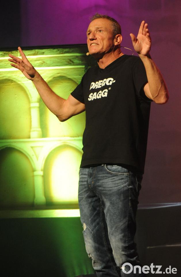 "Der fränkische Dreggsagg", wie er sich selbst nennt, füllte kürzlich das ACC, wo er zu Fanfarenklängen auf die Bühne stolzierte und verkündete, dass es mit Deutschland wieder aufwärts gehe. Damit meinte er weniger die Fußballer, aber Wimbledonsiegerin Angelique Kerber habe es geschafft. Auch Nivea atme auf, denn Jogi Löw bleibe als Werbeträger erhalten. Die Kanzlerin sitze fest im Sattel, aber der alternde Großvater Horst Seehofer solle sich doch bald nach einem Heimplatz umsehen.