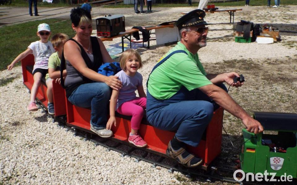 Die Mitglieder richteten wieder auf dem Gelände am Galgenbergweg ihr Fest aus, das langsam, aber sicher zum Volksfest gerät. Wo auch sonst lässt sich auf Lokomotiven klettern, mit der Draisine fahren und auf Schienenfahrzeuge steigen?