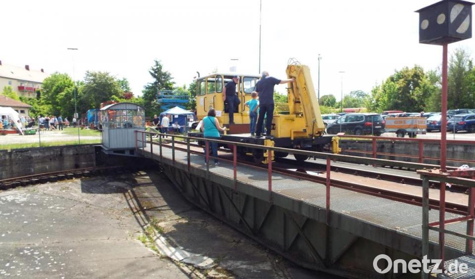 Herzstück der gesamten Ausstattung ist die 23 Meter lange und vom Verein wieder betriebsfähig gemachte Drehscheibe mit einer Tragkraft von 168 Tonnen. Mit ihr wurden früher mächtige Dampfloks in die richtige Position gedreht. Derzeit wird als große Baumaßnahme am Lokschuppendach gearbeitet, die Gäste konnten sich vom Fortschritt der Dachrenovierung überzeugen.