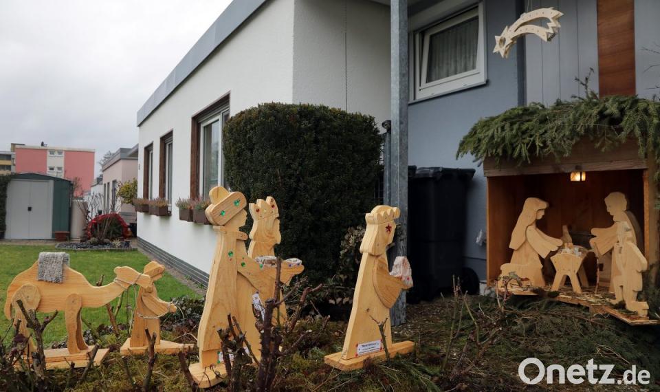 Eine Krippe im Garten ist eine Rarität. Zumal wenn sie so groß ist wie die von Gregor Fritsch in der Röntgenstraße 55. Die Krippenszene im Stall hat er schon mehrere Jahre aufgestellt, doch dieses Mal kamen auch die Könige und weitere Figuren dazu. Gregor Fritsch hat sie im Sommer selbst hergestellt - nach Plänen, die ihm Schwiegertochter Eva aus dem Internet besorgte. Die Passanten sind von den Figuren alle begeistert, erzählt Fritsch. "Einmal war sogar eine ganze Kindergartengruppe da." Die Figuren schmücken den Garten seit Mitte Dezember, am nächsten Montag werden sie aber wieder abgebaut. Die Heiligen Drei Könige sind schließlich auch nur ein paar Tage geblieben.