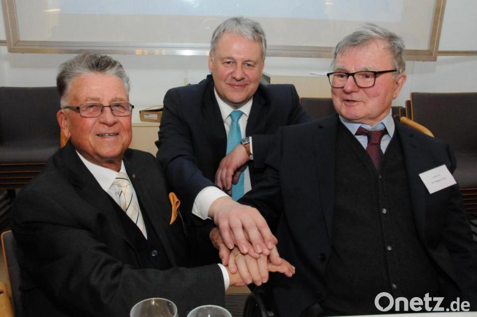 Ein Bild mit Seltenheits- und Symbolwert: Drei Landräte reichen sich die Hand. Beim Neujahrsempfang des Landkreises Amberg-Sulzbach war Amtsinhaber Reisinger auf seine Vorgänger getroffen. Alle Drei Herren haben seit 1978, also die vergangenen 41 Jahre, die Geschicke des Landkreises geleitet. Hans Wagner von 1978 bis 2002, Armin Nentwig von 2002 bis 2008 und Richard Reisinger seit 2008.