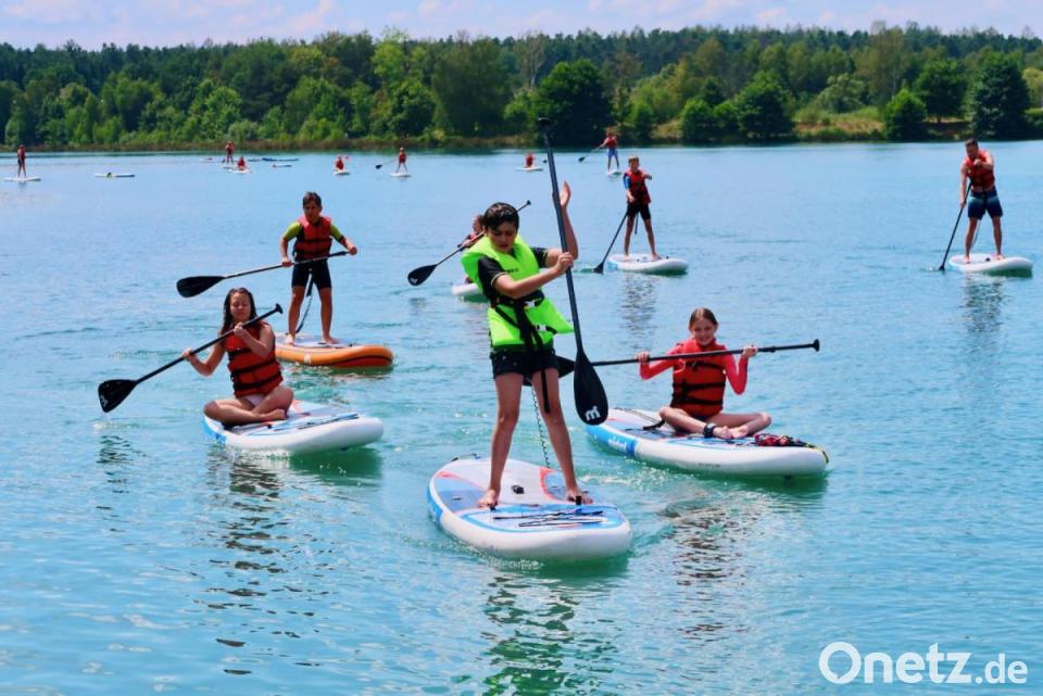 Statt des traditionellen Zeltlagers boten die Gruppenleiter der KjG Amberg eine dreitägige Ferienbetreuung mit attraktivem Programm an. Den Auftakt zu drei Tage Spaß, Spannung, Sport und Spiel bot das Stand-Up-Paddling auf dem Murner See, für das die katholischen Jugendstelle die Boards bereitgestellt hatte. Als nächstes stand ein Spiele- und Basteltag an. Um die Corona-Hygienevorschriften einhalten zu können, bekamen die Kinder selbst genähte weiße Masken, die sie mit dem KjG-Logo bestickten und mit wasserfesten Farben bemalten. Viel Spaß machte das Spiel "Herr der Ringe".