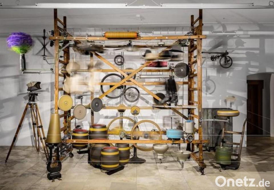 Der Hinweis „Bitte nicht berühren“ trifft im Erdgeschoss des Luftmuseums in Amberg tatsächlich ins Schwarze. Denn die Maschinen von Willi Reiche laufen permanent und unaufhörlich. Weshalb unbedacht Zugreifende Gefahr liefen, hineinzugeraten, ins Innenleben einer dieser sehr eigentümlichen Apparate. Und prompt verschlungen zu werden, von diesen geheimnisvoll agierenden Zahnrädern und Transmissionsriemen, die diese sich drehenden Ansammlungen von Alltagsgegenständen und Zeugnissen früher Technik in Bewegung versetzen.