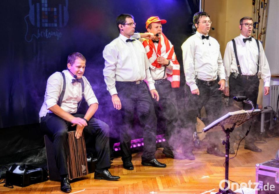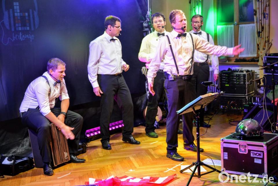 Die Bertomijo-Hymne erzählte von dem kleinen italienischen Ort, dem die Gruppe ihren Namen verdankt. Ganz aktuell erzählten sie auch mit einem Augenzwinkern, dass in Ehenfelds Straßen am Vortag ein großer Demonstrationszug stattgefunden hatte. Die Teilnehmer hätten lange Stöcke mit brennender Pyrotechnik vorne dran gehabt und grölten laut: "Laterne, Laterne, Sonne, Mond und Sterne". Außerdem hatte Bertomijo "Mama Mia" mit im Gepäck sowie einen Regensburg Rap, eine lustige Homage an ihre Wahlheimat.