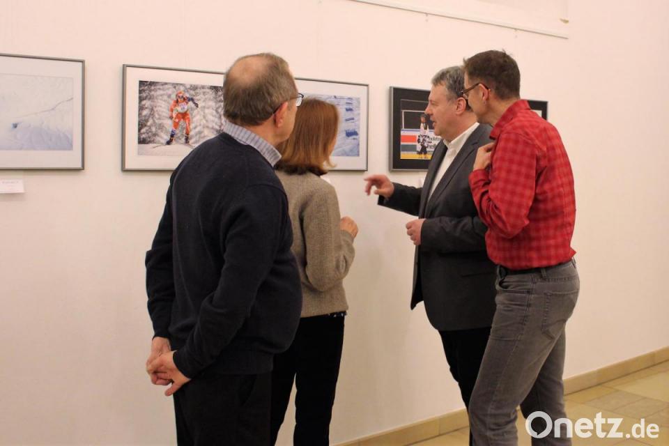 "Eiskalt" heißt die Vernissage und trotzdem kann es einem ganz warm ums Herz werden. Winterwald mit Einfall der roten Abendsonne. Und schneebedeckte Dächer der Innenstadt lösten gar Diskussionen aus. Welcher Stadtteil ist das nun und von wo aus wurde fotografiert?, fragte sich mancher Besucher. Hobbyfotograf Hans König löste das Geheimnis: "Hier ist die Georgenstraße und das ist das Gebäude der Bank." Vom Mariahilfberg aus knippste er das Bild vor längerer Zeit. Auch Sportliches hängt an den Wänden - hechelnde Schlittenhunde und Langläufer in Aktion.
