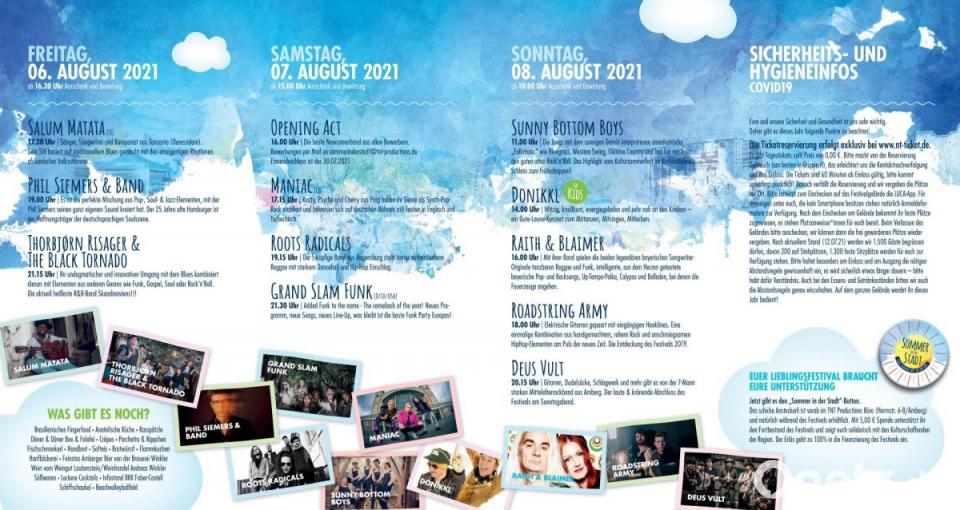 Damit trotz der angespannten Haushaltslage der Stadt Amberg das Festival "Sommer in der Stadt" auch in diesem Jahr gratis bleiben kann, hat Kulturreferent Fabian Kern alle Register gezogen, um in ein Förderprogramm des Bundes zu kommen. Zusätzlich können sich die Festivalbesucher aber auch über Spenden als Förderer beteiligen. Dazu wurde eigens ein Ansteck-Button entworfen, der für einen Mindestpreis von fünf Euro gekauft werden kann. "Der Erlös geht natürlich zu 100 Prozent in das Festival, damit die Kosten gedeckt werden können", verspricht Toby Mayerl. Bleibt noch die Hoffnung, dass die Sieben-Tage-Inzidenz einigermaßen hält, um den Ambergern und ihren Gästen wieder ein tolle Festival "Sommer in der Stadt" bieten zu können.