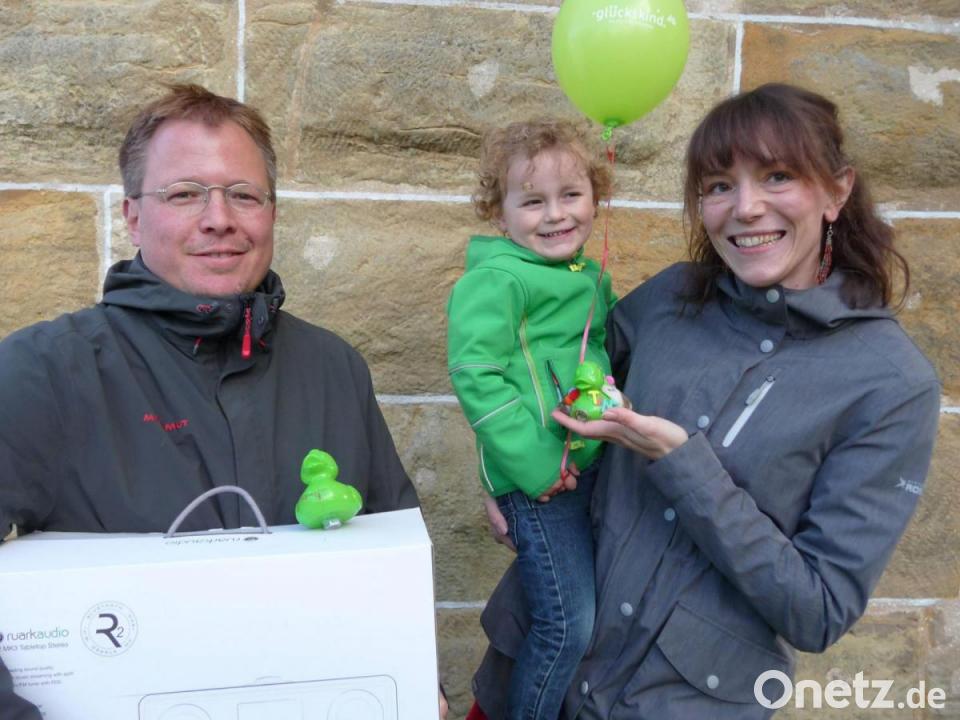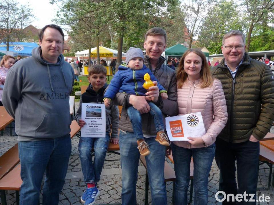 Bis er seinen Hauptgewinn nutzen kann, muss er noch Jahre warten – oder Mama und Papa ranlassen. Die schnellste Ente (Nummer 373) gehört Elias Lautenschlager aus Schnaittenbach. Er hat einen Weber-Grill gewonnen. Der Bub ist 16 Monate alt und war mit seinen Eltern am Sonntag zur Siegerehrung in den Landratsamts-Innenhof gekommen. Der zweite Preis, Schmuck aus dem Hause von der Recke, geht an die Nummer 3777, wurde aber nicht abgeholt. Über den dritten Preis und ein Wochenende mit einem Volvo XC freut sich Raphael Dütsch aus Sulzbach-Rosenberg, der als Schüler aber noch keinen Führerschein hat. Bei den Küken wartet der Hauptgewinn, ein Cube-Kinderfahrrad, noch auf seinen Besitzer mit der Nummer 4163. Gereon Brück aus Amberg sicherte sich als Zweiter ein Radiogeräte der Firma Pieper und Tim Emmel aus Hahnbach als Dritter einen Gutschein für den Monte-Coaster in Hirschau.
