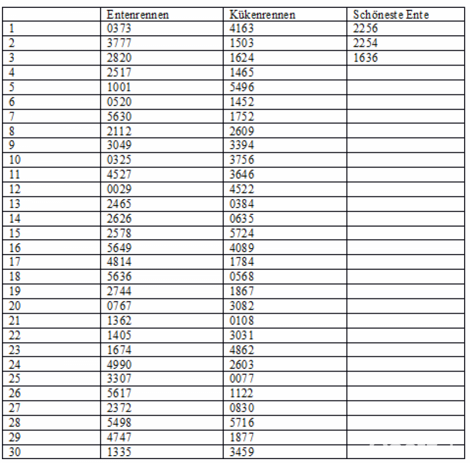 So war es dann auch. Im Pulk näherte sich gut ein Dutzend dem Ziel. Lange war nicht klar, welches Plastiktier am Ende als Sieger hervorgeht. In einem spannenden Endspurt setzte sich Nummer 373 letztlich durch. Dann ging es Schlag auf Schlag: Auch die ersten Küken kamen zügig an. Notar Klaus Engelhardt (Amberg) musste schnell sein, um auch keines der Tierchen zu verpassen.
