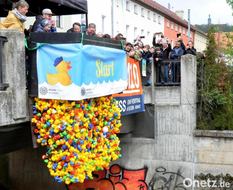 Den Erfahrungen der Vorjahre folgend, waren die Organisatoren vom Service-Club Round Table 69 Amberg um Präsident Michael Rogenhofer davon ausgegangen, dass die schnellste Ente den Weg zwischen der Brücke an der Fronfestgasse und dem Landratsamt in rund 30 Minuten zurücklegen könnte.