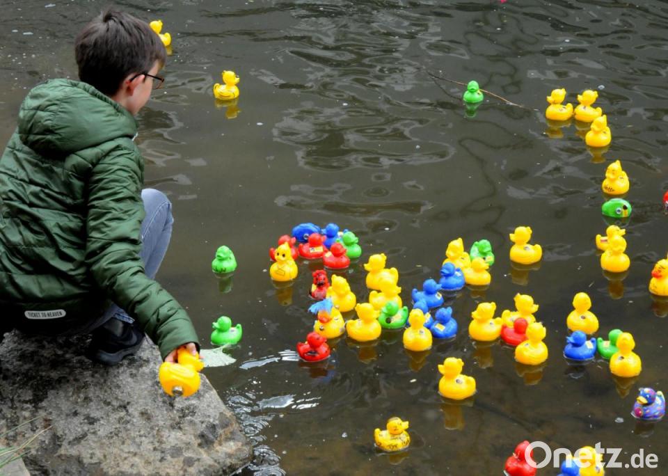 Bei den Erwachsenen-Enten kamen nach der 373 auf den weiteren Rängen die 3777, 2820, 2517 und 1001 im Ziel hinter der Stadtbrille an. Die schnellsten Küken hatten die Nummer 4163, 1503, 1624, 1465 und 5496. Round-Table-Präsident Michael Rogenhofer war in diesem Moment die Erleichterung anzumerken. Nicht nur, weil der Ablauf reibungslos war, auch das Wetter passte. Nur 24 Stunden zuvor hatte es so stark geregnet, dass sich die Organisatoren Sorgen um die Veranstaltung hätten machen müssen. So aber waren alle zufrieden. Das lag auch an dem Familienfest, das nach dem Rennen im Innenhof des Landratsamts gefeiert wurde - bei Essen, Getränken und mit Musik von Grögötz Weißbir.