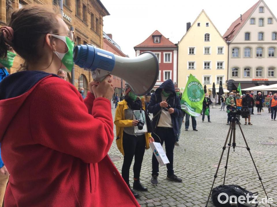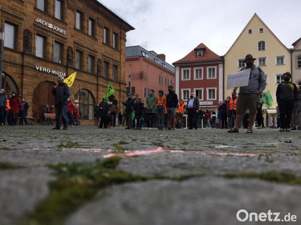 Es war die erste Klimademonstration nach dem Lockdown am Freitag auf dem Marktplatz. Etwas mehr als 100 Menschen kamen, um auf das Thema aufmerksam zu machen, das in den vergangenen Monaten etwas im Schatten der Corona-Krise verschwunden ist – die Klimakrise. "Leider müssen wir schon wieder hier stehen", sagte Mit-Organisatorin Aziza Ernst und zielte damit auf die Tatsache ab, dass sich aus Sicht von FFF in Sachen Klimaschutz nicht viel getan hat, seit Fridays for Future für die Senkung des CO2-Ausstoßes und eine klimaneutrale Politik auf die Straße geht. Gemeinsam mit 450 anderen deutschen Städten, mit weltweit 3000 Kommunen, die sich an der Freitagsdemo beteiligten, demonstrierten die Menschen in Amberg für den Schutz unseres Planeten. Auffällig die vielen mittelalten und älteren Leute, die mittlerweile zu den Klimaschutzdemos kommen. Um mit den erforderlichen Schutzmaßnahmen in Sachen Corona nicht in Konflikt zu geraten, hatten die Organisatoren vorsorglich Kreidekreuze für den richtigen Abstand auf den Boden gemalt. Außerdem herrschte Maskenpflicht auf dem Marktplatz.