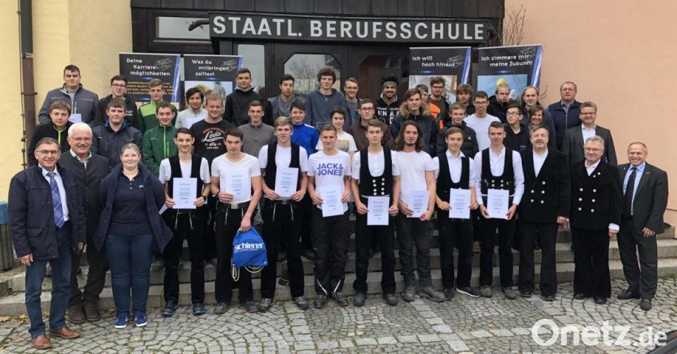 Darüber freuten sich mit Schulleiter Hans Altmann auch die Obermeister der Zimmerer-Innungen Cham, Schwandorf und Amberg-Sulzbach, die die angehenden jungen Kollegen in Furth besuchten.