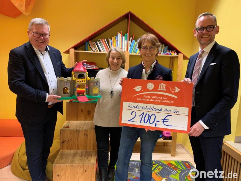 Gemeinnützige Projekte und Organisationen zu unterstützen: Das nennt die Förderstiftung der Sparkasse Amberg-Sulzbach in einer Pressemitteilung eine ihrer wichtigen Aufgabe. Stiftungsratsvorsitzender Thomas Pickel und Ambergs Oberbürgermeister Michael Cerny in seiner Funktion als Mitglied des Stiftungsrat sind zum Kinderschutzbund in Amberg gekommen, um der Einrichtung einen Scheck in Höhe von 2100 Euro zu überreichen, worüber sich die Vorsitzende Brigitte Breitfelder freute.