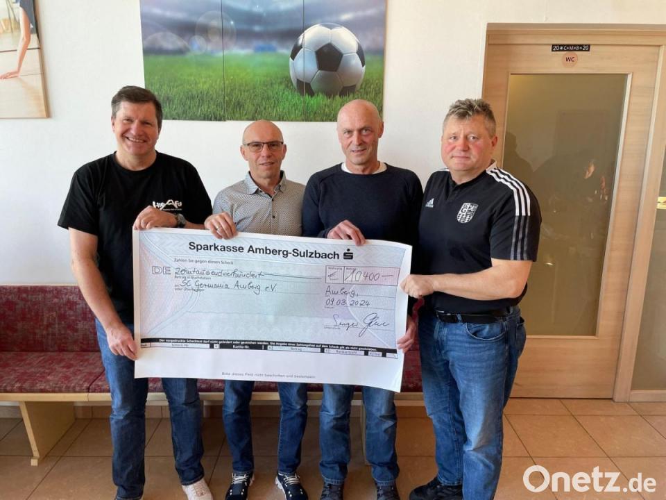 Der Förderverein Germania Amberg 2010 hat dem Hauptverein, also dem SC Germania Amberg, eine Spende über 10.400 Euro überreicht. Die Summe, die während der Jahreshauptversammlung symbolisch als Scheck übergeben wurde, soll laut Vereinsangaben dazu beitragen, die laufenden Aktivitäten und Programme des Hauptvereins zu unterstützen. Der Vorsitzende des Fördervereins, Konrad Singer, betonte die Bedeutung der Zusammenarbeit zwischen dem Förderverein und dem Hauptverein: "Es ist uns eine Ehre, den Hauptverein in seiner wichtigen Arbeit zu unterstützen." Der Präsident des SC Germania, Alfred Scherm, bedankte sich mit diesen Worten: "Diese großzügige Spende ist ein Beweis für die Stärke unserer Gemeinschaft und das Engagement unserer Mitglieder." Die Summe ermögliche es, den Verein weiter voranzutreiben und wichtige, anstehende Projekte voranzubringen.