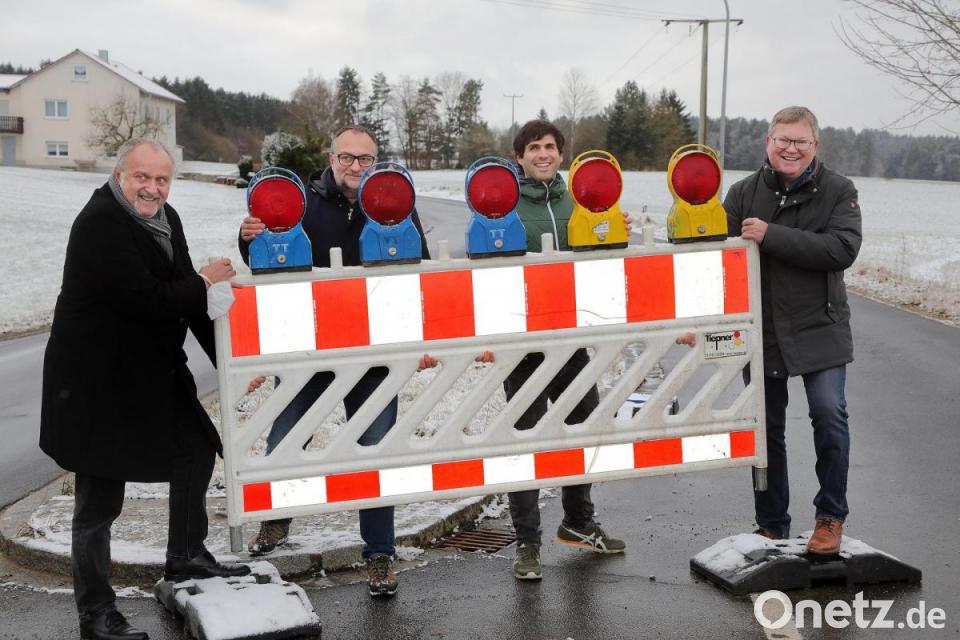 Ausgeführt wurden die Arbeiten von der Firma Englhard, die sowohl in Amberg als auch in Ammerthal daheim ist und von daher durchaus ein gewisses Eigeninteresse an einer gut funktionierenden Straßenverbindung zwischen den beiden Firmenstandorten besitzt. "Wir werden beim nächsten Bauabschnitt sicher auch wieder gut anbieten", schaute Firmenchef Hubert Englhard in die Zukunft. Wobei aktuell die Finanzierung ab Fuchsstein bis zur Stadtgrenze noch nicht gesichert ist. Symbolisch entfernten Michael Cerny, Anton Peter sowie Hubert Englhard und Markus Hermann dann noch die Absperrbarke mit der Bitte an die Autofahrer, sich doch an die Geschwindigkeitsbeschränkung zu halten und die neue Straße nicht zum Schnellfahren zu nutzen.