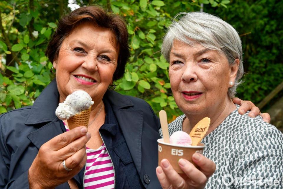 In der einen Hand haben die Leser der Amberger Zeitung einen Regenschirm gehalten und in der anderen eine Kugel Eis in der Waffel oder im Becher. Auch wenn an diesem verregneten Donnerstagmittag, 27. Juli, keine Abkühlung notwendig war, freuten sich Jung und Alt über eine Kugel beim Rossini im Englischen Garten. Anne Ellerbeck und ihre Freundin aus Koblenz, Elisabeth Hecking, haben sich besonders über das Leser-Angebot gefreut. "Eigentlich ist das heute kein Eis-Wetter, aber mir macht der Regen nichts aus. Ein Eis schmeckt immer", sagt Hecking.