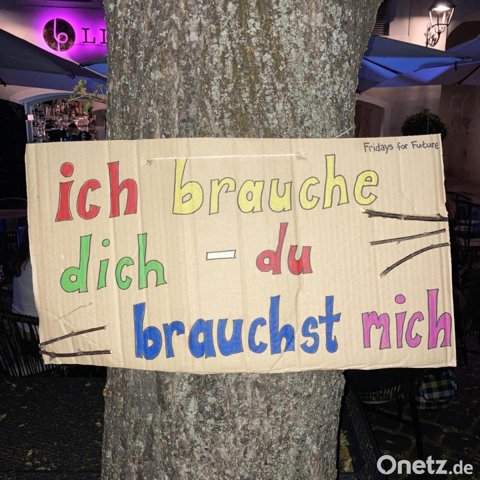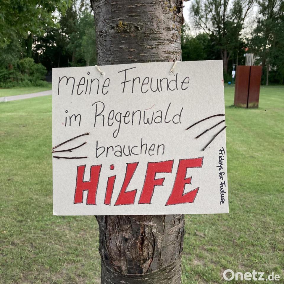 In Deutschland starben laut FFF in den Hitzesommern 2018 und 2019 mehr als 2000 Quadratkilometer Wald bedingt durch Hitze, Befall durch Schädlinge und Extremwetterereignisse - alles Phänomene, welche durch den Klimawandel bedingt seien. Deswegen versahen die Amberger Aktiven die Bäume mit aussagekräftigen Tafeln wie: "Ich bin ein Risikopatient", „Meine Freunde im Regenwald brauchen Hilfe“ oder „Ich bin dein