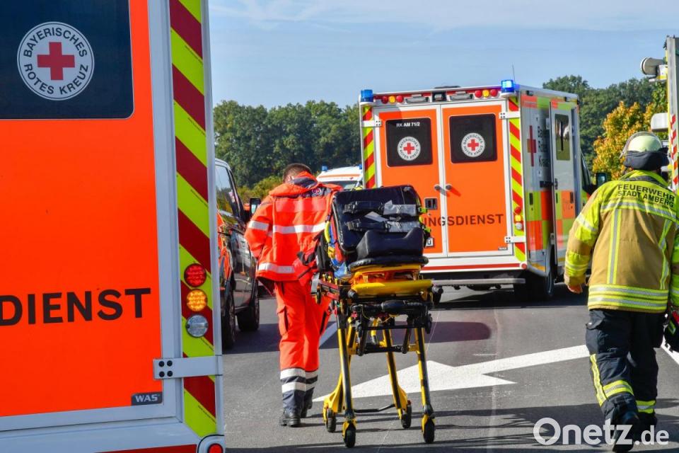 Gegen 13.30 Uhr kam es am Freitag zu einem schweren Unfall, bei dem auch zwei Kinder in Mitleidenschaft gezogen wurden. Es galt für die Rettungskräfte, erneut Schwerstarbeit zu leisten, nachdem sie schon am Vormittag bei einem Großeinsatz im Beruflichen Schulzentrum höchst gefordert waren. Beim Einsatz am Unfallort auf der B85 zwischen Speckmannshofer Kreuzung und Schäflohe waren insgesamt fünf Personen beteiligt, alle aus dem Landkreis Amberg-Sulzbach. Nach ersten Angaben der Polizei war ein 50-Jähriger, von Amberg her kommend, aus noch ungeklärter Ursache mit seinem Renault-Van auf die Gegenfahrbahn geraten und frontal mit einem VW-Van kollidiert. In dem VW saß ein Familie mit Vater (47) Mutter (32) und ihren Kindern mit 7 und 6 Jahren. Nach der Erstversorgung durch den BRK-Rettungsdienst, der mit Notärzten und insgesamt vier Fahrzeugen vor Ort war, kamen die Schwerverletzten in die umliegenden Krankenhäuser Amberg und Sulzbach. Die Feuerwehren Amberg und Karmensölden waren laut Stadtbrandmeister Sebastian Schindler mit sechs Fahrzeugen und 30 Kräften sofort am Unfallort und kümmerten sich schleunigst um die Absicherung des Unfallorts an dieser vielbefahrenen Bundesstraße. Nur so konnten die Retter und die Polizei sicher ihre wertvolle Arbeit aufnehmen. Nach der Versorgung der Verletzten sorgten die Feuerwehrleute für das Binden der ausgelaufenen Flüssigkeiten und kümmerten sich weiterhin um die Großräumige Umleitung. Die B85 war an diesem Freitagnachmittag für mehrere Stunden komplett gesperrt.