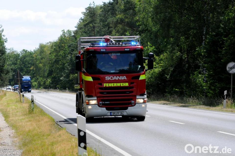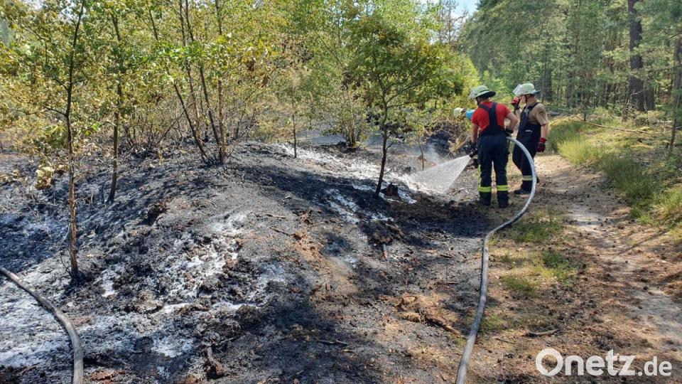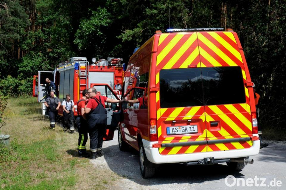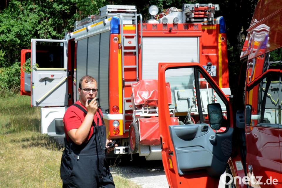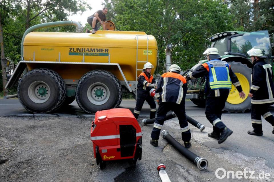 Deshalb brachten die Löschfahrzeuge Wasser im Pendelverkehr zu den Einsatzstellen. Am einem Einsatzort mussten sie einen Kilometer in den Wald fahren, teilweise musste dabei mit der Motorsäge der Weg freigeschnitten werden. Bis auf 200 Meter kamen die großen Feuerwehrfahrzeuge an die Brandstelle ran. In Paulsdorf war für die Wasserversorgung extra eine Wasserfüllstation eingerichtet worden. Dafür hatte die Feuerwehr Hiltersdorf einen Hydranten angezapft. Löschfahrzeug um Löschfahrzeug fuhr so das notwendige Wasser an die Einsatzstellen.