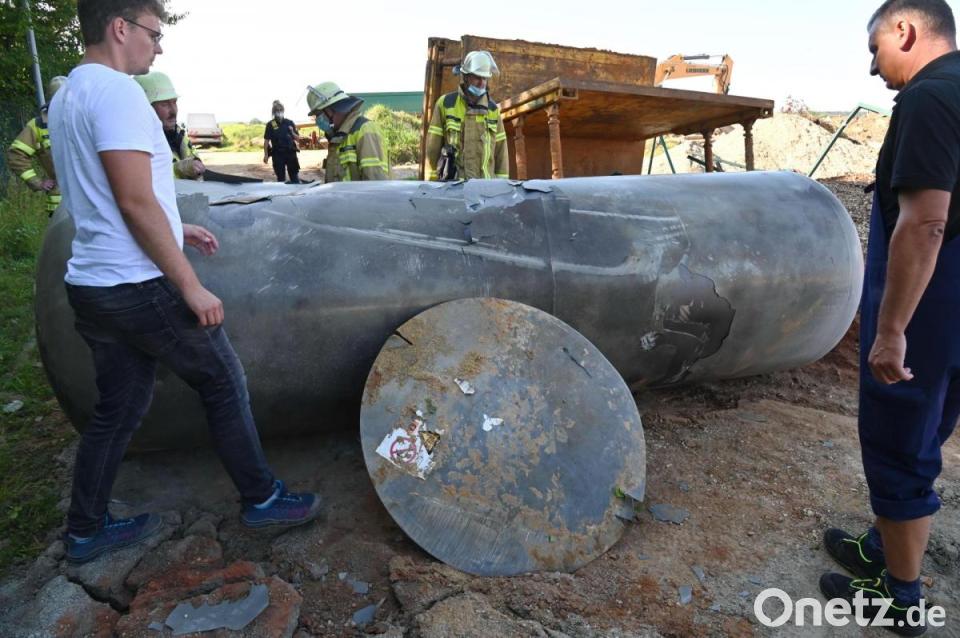 Gut möglich, dass dieses alte Fundstück noch aus der Zeit stammt, als die US-Armee in der Möhlkaserne stationiert war: Bei Bauarbeiten zur Erschließung des neuen Amberger Baugebiets Kennedystraße-Süd 2 ist am Freitagmorgen ein großer, alter Flüssiggastank zutage gekommen. Er war im Bereich der Godlewskystraße im Boden versenkt und hätte eigentlich leer sein sollen. Doch als ihn ein Baggerführer mit seinem Baufahrzeug freilegte, lag plötzlich Gasgeruch in der Luft. Vorsichtshalber wurden daraufhin die Bauarbeiten unterbrochen und die Feuerwehr alarmiert.
