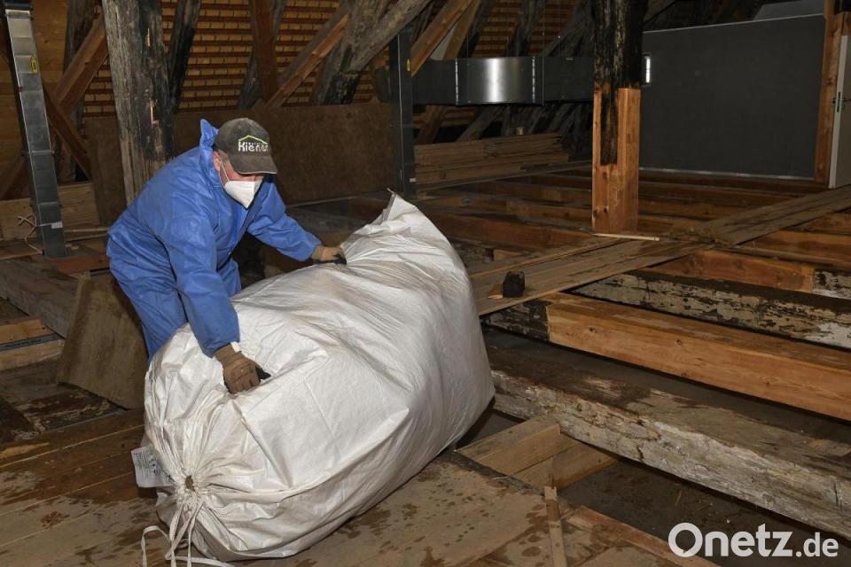 "Die Verpressung hat sich einfach gelöst", sagte er, die Suche nach den Gründen dafür läuft. Wobei laut Meier von den 30 Kubikmetern, die ausgetreten sind, nur ein geringer Teil über Leitungsschächte in den eigentlichen Archivbau eingedrungen sind. Trotzdem stand das Wasser hier beim Eintreffen der Feuerwehr zum Teil zentimeterhoch, rund 80 der hier gelagerten wertvollen Archivalien sind direkt geschädigt. Sie wurden inzwischen nach Leipzig ins Zentrum für Bucherhaltung gebracht. "In nüchternen Zahlen sind das 125 Kilogramm", sagte Meier. Die Kosten für Gefriertrocknung und Transport liegen bei rund 5000 Euro, der Aufwand für die eventuell notwendige Sanierung der Bände - darunter 40 Ratsbücher - stehen augenblicklich noch nicht fest.