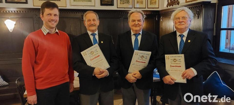 Vorsitzender Walter Burger eröffnete die Generalversammlung des Männerchores Liedertafel Amberg nach längerer Pandemiepause. Burger gab einen ausführlichen Bericht über die vergangenen vier Jahre Das letzte Singen war demnach in der Adventszeit 2019. Corona-bedingt ruhte das Vereinsleben im Anschluss. Bei einer Sitzung im Jahr 2021 haben sich mehrere Sänger geäußert, dass sie aus Altersgründen, bzw. aus gesundheitlichen Gründen mit dem Singen aufhören. Es blieben nur noch vier Sänger übrig, die weiter Singen wollten. Diese schlossen sich dem Männerchor Haselmühl/Kümmersbruck an. Erwähnen wollte Burger noch, dass die Liedertafel 1877 gegründet wurde und 146 Jahre alt wurde. Die Sänger und der Vorstand sehen keine Zukunftsperspektive mehr für den Verein, wurde deutlich. Burger: "Wir sind machtlos gegenüber der jüngeren Generation, die kaum Interesse am Singen zeigt, geschweige denn sich einem Gesangverein anschließt." Burger bedankte sich bei seinen Vorstandkollegen für die jahrelange, gute Zusammenarbeit und beendete seinen Bericht. Chorleiter Christian Farnbauer bedauerte in seinem Rückblick ebenfals die Corona-Pause. Er habe 2007 die Liedertafel übernommen und es wären in diesem Jahr 15 Jahre Chorleitertätigkeiten gewesen. "Es war eine schöne Zeit, wir hatten schöne Chorproben, in denen wir viel gelernt und dabei auch die Gemeinschaft gestärkt haben." Farnbauer denkt gerne an die vielen Auftritte zu Gottesdiensten, Konzerten in den Altersheimen, Auftritte im Maltesergarten zurück sowie an die schönen Ausflüge. Er machte den Vorschlag, sich jeden zweiten Mittwoch im Monat beim Kummert zu einem Dämmerschoppen zu treffen. Er bedankte sich beim Vorstand für die gute Zusammenarbeit. Nun galt es, Mitglieder zu ehren: Für zehn Jahre: Brigitte Wochnick, Barbara Utikal, Norbert Utikal, Berta Ruhmannseder, Inge Necker, Wolfgang Zweck und Helene Ladsherr; 20 Jahre: Jörg Pischke; 30 Jahre: Ingrid Lay; 40 Jahre: Claus Mohns; 50 Jahre: Hans Weigert, Josef Schlaffer, Walter Burger; 60 Jahre: Wolfgang Sander; 60 Jahre: Josef Ziob, Hartmut Kusikowski, Erhart Kusikowski. Alle Geehrten bekamen vom Verein eine Urkunde und ein Präsent überreicht.