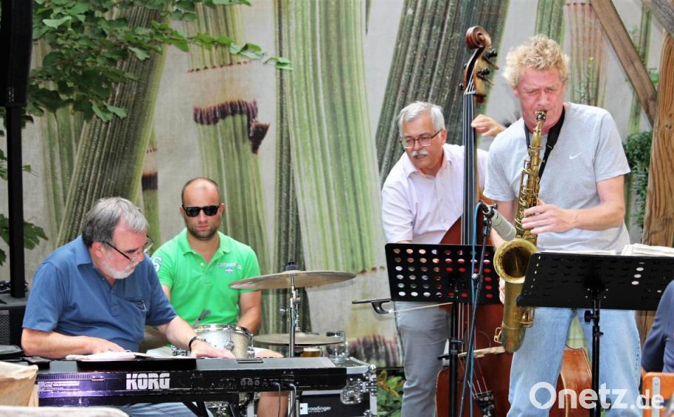Die erste Melodie, nach einem kurzen Soundcheck und der darauf folgenden Atempause, heißt bei Leroy Liqueur immer „On the sunny side of the street“, so auch beim Auftritt der Band im Casino-Biergarten. Ein Jazz-Standard – von vielen namhaften Künstlern interpretiert, wie Dave Bruback oder Louis Armstrong. Billie Holiday und Doris Day verleihten der Melodie die passende Stimme während sie „lass deine Sorgen an der Hausstür und lenke deine Füße einfach zur sonnigen Seite der Straße“ trällerten. Und das Amberger Jazz-Ensemble Leroy Liqueur führte Auserwählte direkt in den Biergarten von Hans Graf. Der Wirt ist es nämlich, der dieses „gepflegte Sommerritual“ laut Front-Mann Uli Wähner, jährlich iniziiert.