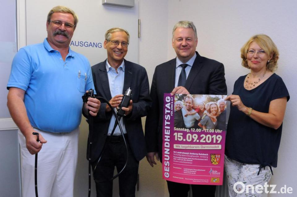 Der Gesundheitstag im Landratsamt, vom Gesundheitsamt und dem Ärzteverbund Oberpfalz Mitte veranstaltet, hat sich als feste Größe etabliert. Traditionell findet er am ersten Sonntag nach Schulbeginn, heuer am 15. September, von 12 bis 17 Uhr statt. Schirmherr ist Landrat Richard Reisinger. Ein 5,5 Meter langes, begehbares Darmmodell informiert anschaulich über den Aufbau dieses Organs. Die Besucher erfahren Wissenswertes über mögliche krankhafte Veränderungen im Inneren des Darms, die sich zu Darmkrebs entwickeln können, sowie über chronische Darmerkrankungen. Der Ärzteverbund mit seinem Vorsitzenden Dr. Harald Schmaußer stellt wieder Fachärzte zur Verfügung, die Erläuterungen hierzu geben.