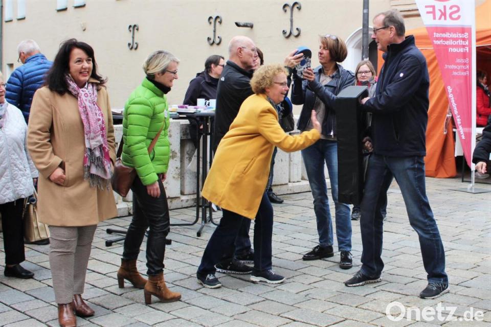 Gleichzeitig sammelten die Initiatorinnen mit Kuchen und Kaffee Spenden für Frauen und Kinder in Not. Viele Passanten, die neugierig stehen blieben, interessierte vor allem, warum es in Amberg und im Landkreis keine professionelle Beratungsstelle mit spezialisiertem Personal in Sachen Sexualverbrechen gibt und wie der Bau eines Frauenhauses beschleunigt werden könne.