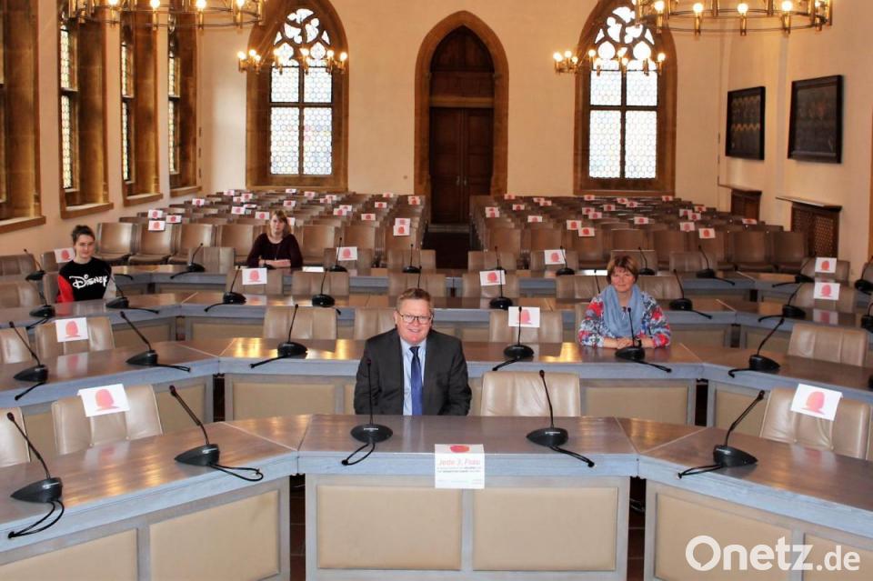 Jede dritte Frau in Deutschland hat Umfragen zufolge bereits körperliche oder sexuelle Gewalt erlebt. Um das zu ändern, beteiligt sich der Sozialdienst katholischer Frauen (SkF) an der bundesweiten Aktion – nicht zuletzt, da der SkF bei der Hotline als Anlaufstelle registriert ist. „Wir wollen auf das Ausmaß aufmerksam machen und die Bevölkerung sensibilisieren, aber auch Opfern einen Weg aus der Gewalt zeigen“, sagte Sozialpädagogin Julia Möbus bei einem Treffen im Rathaussaal. 204 Stühle wurden in dem Raum mit 68 Schildern versehen. Im Stadtrat sitzen elf Frauen. Möbus rechnet nach: „Statistisch gesehen wären vier Stadträtinnen betroffen.“ Die Aktion beinhaltet auch die Veröffentlichung von eigenen Fotos. Unter dem Hashtag #schweigenbrechen soll die Telefonnummer 08000/116 016 bekannter werden. Die ausgebildeten Mitarbeiterinnen des Hilfe-Telefons sind nicht nur empathisch und frei von Vorurteilen – sie wissen auch, wo die nächste Anlaufstelle für Opfer zu finden ist, und vermitteln anonym weiter. Oberbürgermeister Michael Cerny zeigte sich im Gespräch dankbar für die Leistungen und möchte Frauen motivieren, sich Gehör zu verschaffen.