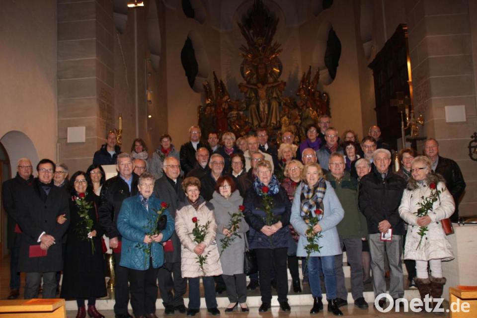 Pfarrer Ludwig Gradl betonte, mit diesem Gottesdienst wolle man den Ehepaaren bewusst machen, dass sie nicht alleine seien. Sondern dass viele andere Paare auch ihren Weg in Treue in ihrer ehelichen Gemeinschaft gingen. In seiner Predigt führte der Geistliche aus, dass Jesus Christus der Dritte im Bunde der Ehe sei, dass er die Ehe begleite und den Weg des Lebens mitgehe, in allen Höhen und Tiefen. Deshalb sei es wichtig, immer wieder auf Jesus zu schauen und die von ihm vorgelebte Liebe in Ehe und Familie Tag für Tag verständnisvoll anzuwenden. Nach dem Einzelsegen für jedes Ehepaar ging es ins Pfarrheim zum Sektempfang, den der Arbeitskreis "Lebendige Gemeinde" für die Jubilare vorbereitet hatte.