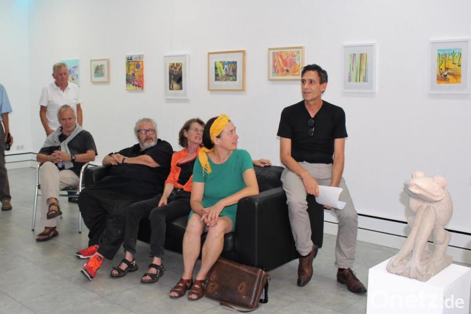 Der "Gamer" hingegen hat Bezug zu ihrem Leben. Bucklig auf den Bildschirm starrend war ihr Sohn die Motivation hinter der Skulptur. Und der "alte Mann mit Hund" ist die Darstellung ihres Vaters. Beide Künstler verstehen es, ihre Umwelt als Werke zu verewigen. Wahrnehmend im Moment des Lebens, den Augenblick einzufangen ohne eine Kamera. Auch Mitglieder des Borgo Ensembles waren bei der Ausstellungseröffnung zugegen. Die musikalische Untermalung jedoch übernahmen die Amberger Leif Wiesmeth und Melanie Dotzler. Bis 26. August können die fränkischen Werke im Kulturstift bestaunt und erworben werden.