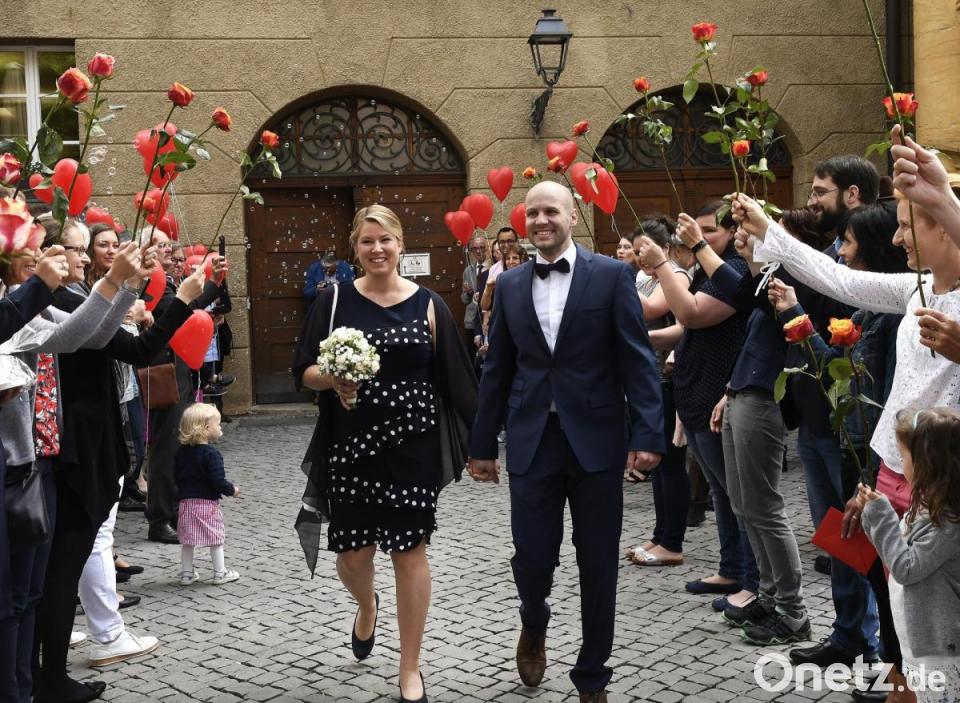 Kennengelernt haben sich die beiden beim Sport im Crossfit in Amberg. Dort stellten sie fest, dass sie sich nicht nur gut leiden können, sondern in der Jesuitenfahrt auch nur wenige Meter voneinander entfernt wohnten. Beide lieben die Natur und Tiere, entspannen sich beim Segeln, Laufen, oder Fahrradfahren - auch mal gerne extremer: wie bei einer Alpenüberquerung im Jahr 2018 mit dem Mountainbike. Eine Abordnung der Jagdhornbläser unter Leitung von Wolfgang Hohlmeier blies den frisch Vermählten ein Ständchen. Alle waren da, nur einer fehlte im Rathaus: Jack-Russel-Terrier Emil, der der Braut sonst immer auf Schritt und Tritt folgt, musste bei der Trauung Zuhause bleiben.