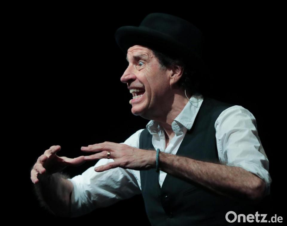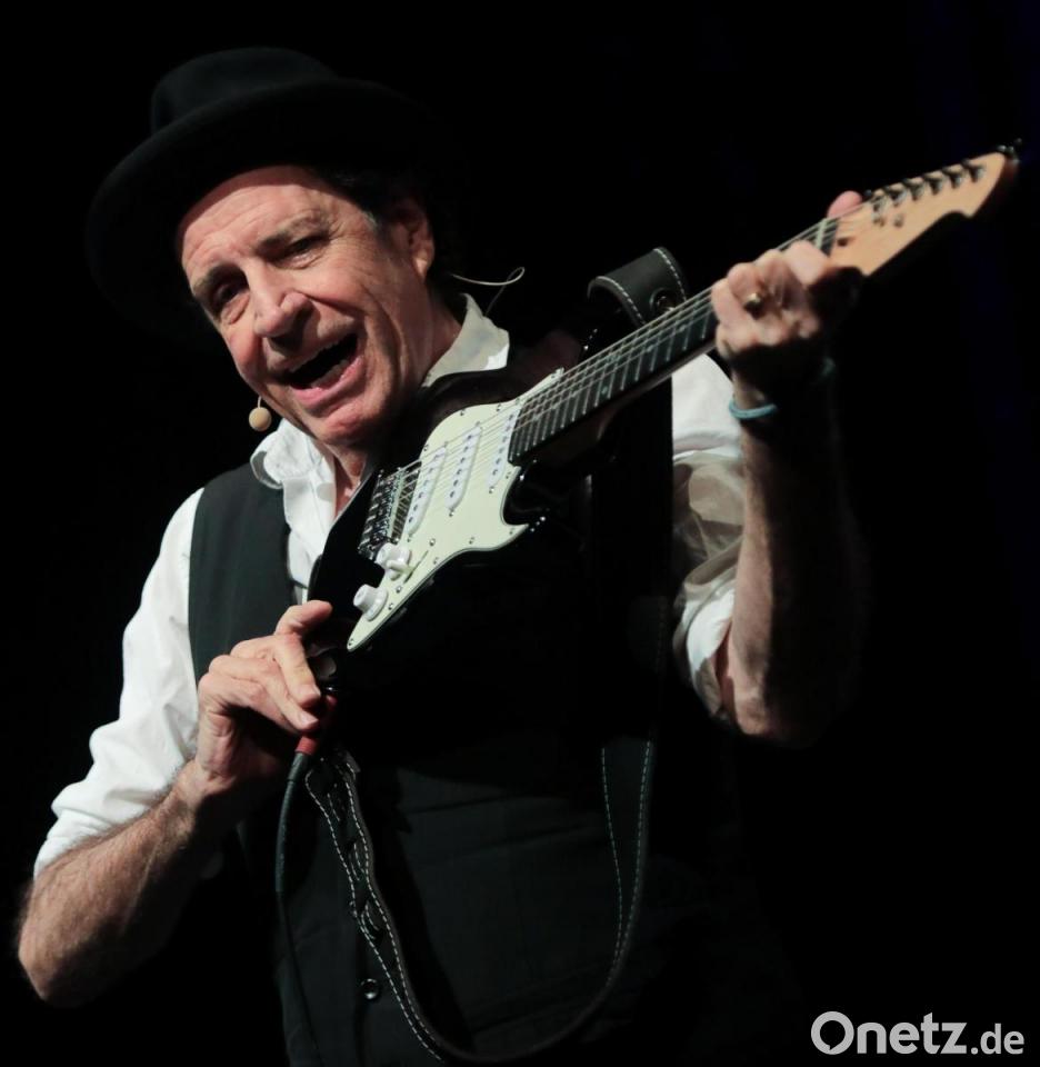 Ein langer Schlacks mit Hut und einer viel zu kleinen E-Gitarre stürmt auf die Bühne des Musikomms in Amberg und bringt den Saal mit einem Gitarrenriff zum Kochen: Helmfried von Lüttichau, bekannt als Polizeiobermeister Johannes "Hansi" Staller aus der Fernsehserie "Hubert und Staller". Den Hut braucht er, wie sich im Laufe des Abends herausstellt, um die kahle Mitte zwischen seinen wilden Locken zu verdecken.