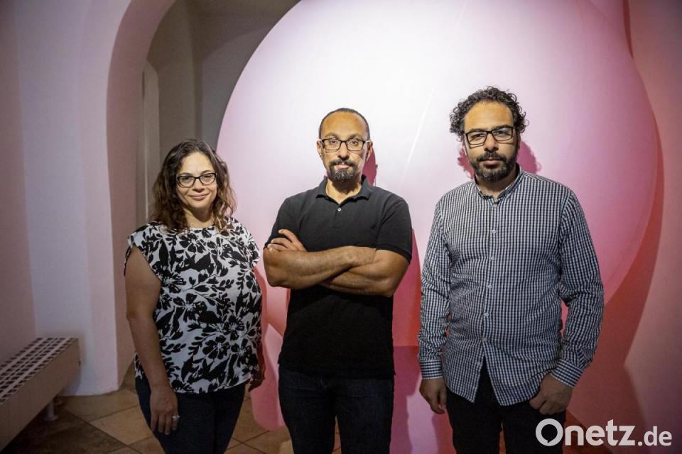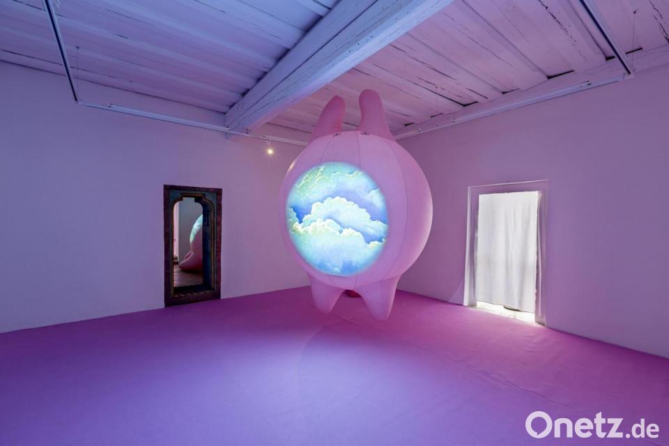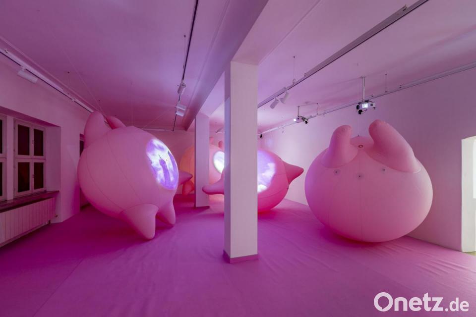 Nun aber nehmen dreizehn Luft gefüllte, mehrheitlich rosafarbene Ballon-Objekte im Inneren des Museums die vier Erdgeschoss-Räume ein, einer sorgt draußen für gebührende Aufmerksamkeit. Am Anfang des ersten gemeinsamen Projekts stand für Weaam El Masry, Mohamed Shoukry und Ahmed El Shaer, die sich bereits zuvor gut kannten, das Wort. Ausgehend vom Motto der 2022er-Biennale in Venedig „The Milk of Dreams“ spürten sie all den Lebensfragen nach, die die Menschheit immerwährend umtreiben und hielten ihre Gedanken in einem Text fest, erzählen die eigens aus Ägypten und Schottland nach Amberg gereisten Künstler im Gespräch mit Oberpfalz-Medien.