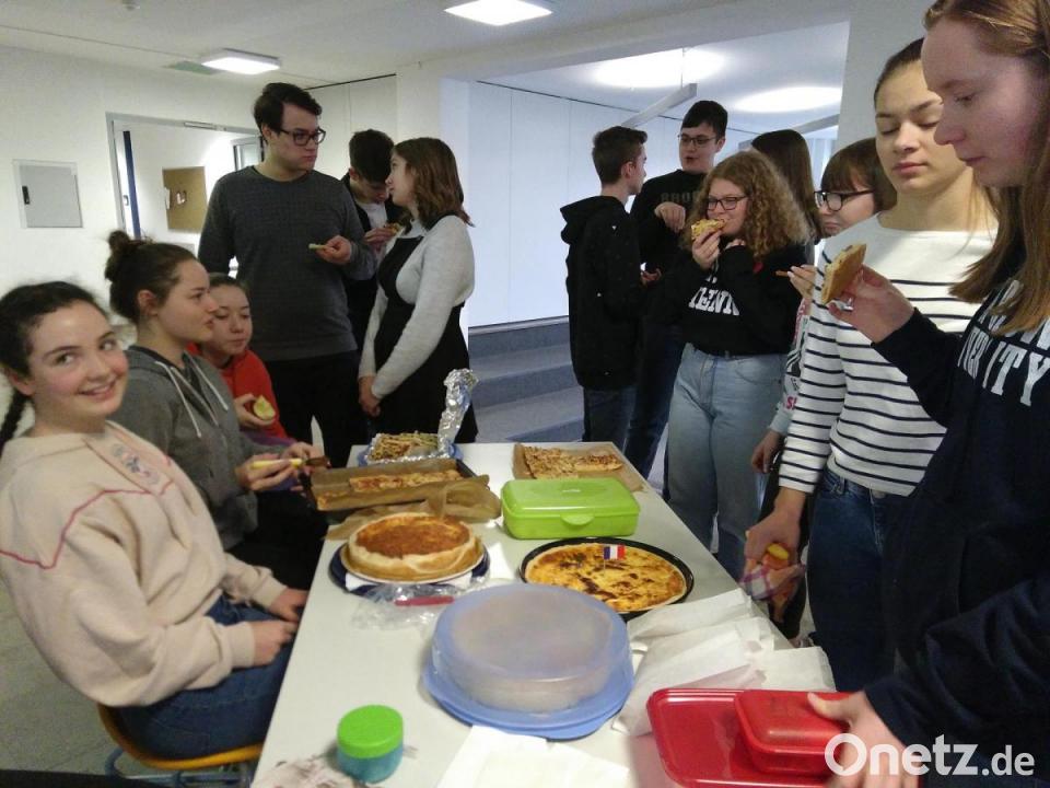 In den Pausen boten Schülerinnen der 10. Klassen hausgemachte, französische Spezialitäten an, von „Buche de Noel“, „Pain d’épices“, verschiedenen Quiches und Flammkuchen bis hin zu kleinen Törtchen reichte das Angebot. Zusätzlich bot die Kantinenwirtin Simone Ippisch süße Croissants und manch andere französische Leckerei „zur Feier des Tages“ an.