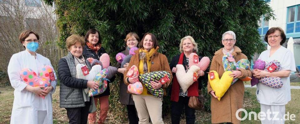 Zum Zunähen kommen dann Maria Kapperer, Ruth Kappl, Heidi Reich und Dagmar Syndar dazu. Gemeinsam werden ein paar schöne Stunden verbracht und die liebevollen Kissen in Form gebracht. An jedes Herz binden die Damen dann noch einen schönen Spruch, der den Patienten Mut und Zuversicht geben soll.
