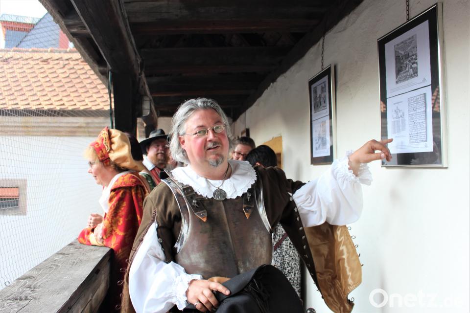 Im großen Stil feiert die Stadtwache Amberg mit den Stadtpfeiffern und ihren Freunden aus Altdorf die Eröffnung der Sonderausstellung: Mit einem Marsch vom Schmalzstadl durch die Altstadt, um die Bürgermeisterin am Rathaus abzuholen. Gemeinsam mit ihrem Gefolge gingen sie zu dem Wachplatz im Gemäuer des Wingershofer Tores. Initiator und Organisator der Vernissage, Heeresfeldzugmeister Klaus Günther, führte anschließend durch die Bildergalerie und erläuterte die dargestellten Ereignisse.