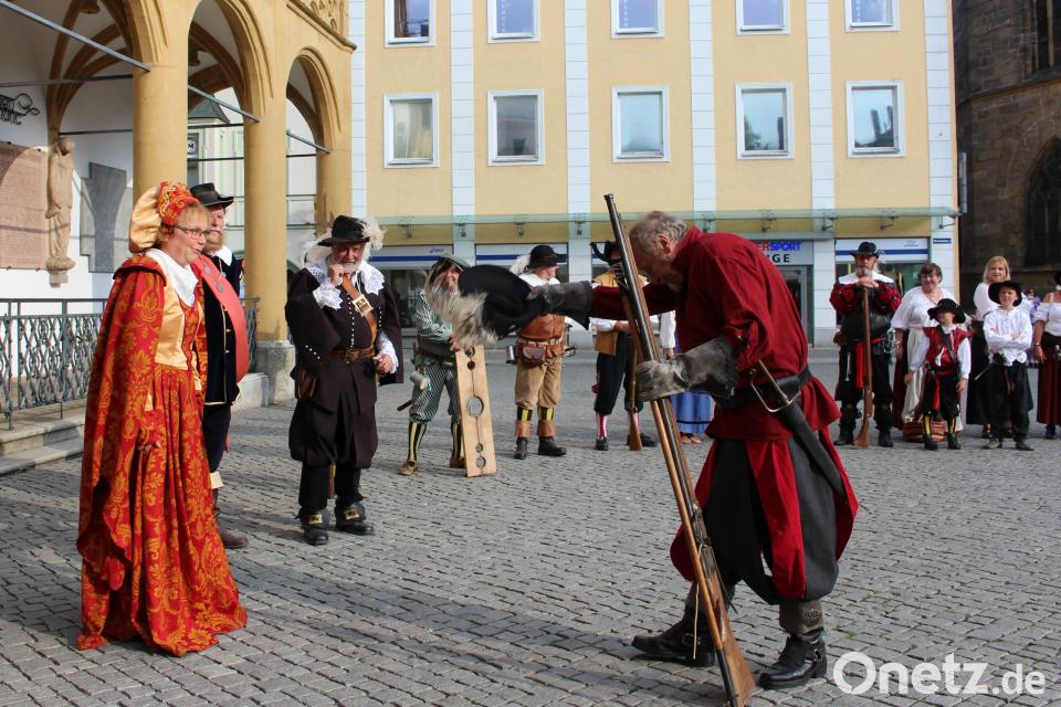 Amberg. (dwi) "Landstriche wurden geradezu entvölkert. Auch die Oberpfalz verlor in manchen Gebieten die Hälfte ihrer Bevölkerung", sagt Stadthauptmann Walter Hellmich in seiner Rede. Amberg versank in einen Dornröschenschlaf und verlor an Bedeutung. Keinesfalls wolle die Stadtwache dem Dreißigjährigen Krieg ein Denkmal setzen. Der Verein wolle vielmehr zum Nachdenken anregen, da viele Parallelen zum Nah-Ost-Konflikt zu erkennen wären.