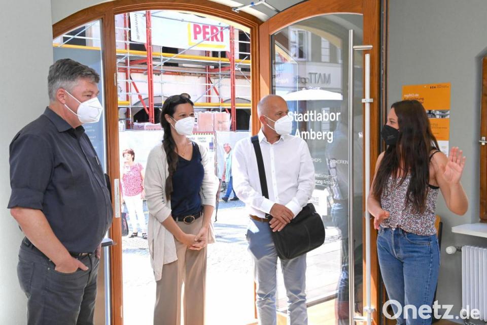 Karlheinz Brandelik, der Geschäftsführer der Wirtschaftsförderungsgesellschaft Gewerbebau Amberg, bietet dem Projekt “Leben-AM-Spitalgraben”, so der Name des Vorhabens auf dem ehemaligen Bürgerspitalgelände, eine temporäre Ausstellungsfläche im Stadtlabor, "um seine Vorteile für die Belebung der Altstadt hervorzuheben". Auch Oberbürgermeister Michael Cerny kam auf einen Sprung vorbei und lobt "die moderne Vermittlung" des viel diskutierten Projekts. Er unterstrich dabei "die Nachhaltigkeit der neuen Bebauung mit ihrem begrünten Dach und ihrer zeitgemäßen Gestaltung".