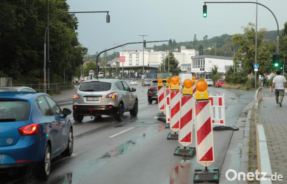 Am Kaiser-Ludwig-Ring senkt sich die Fahrbahn ab