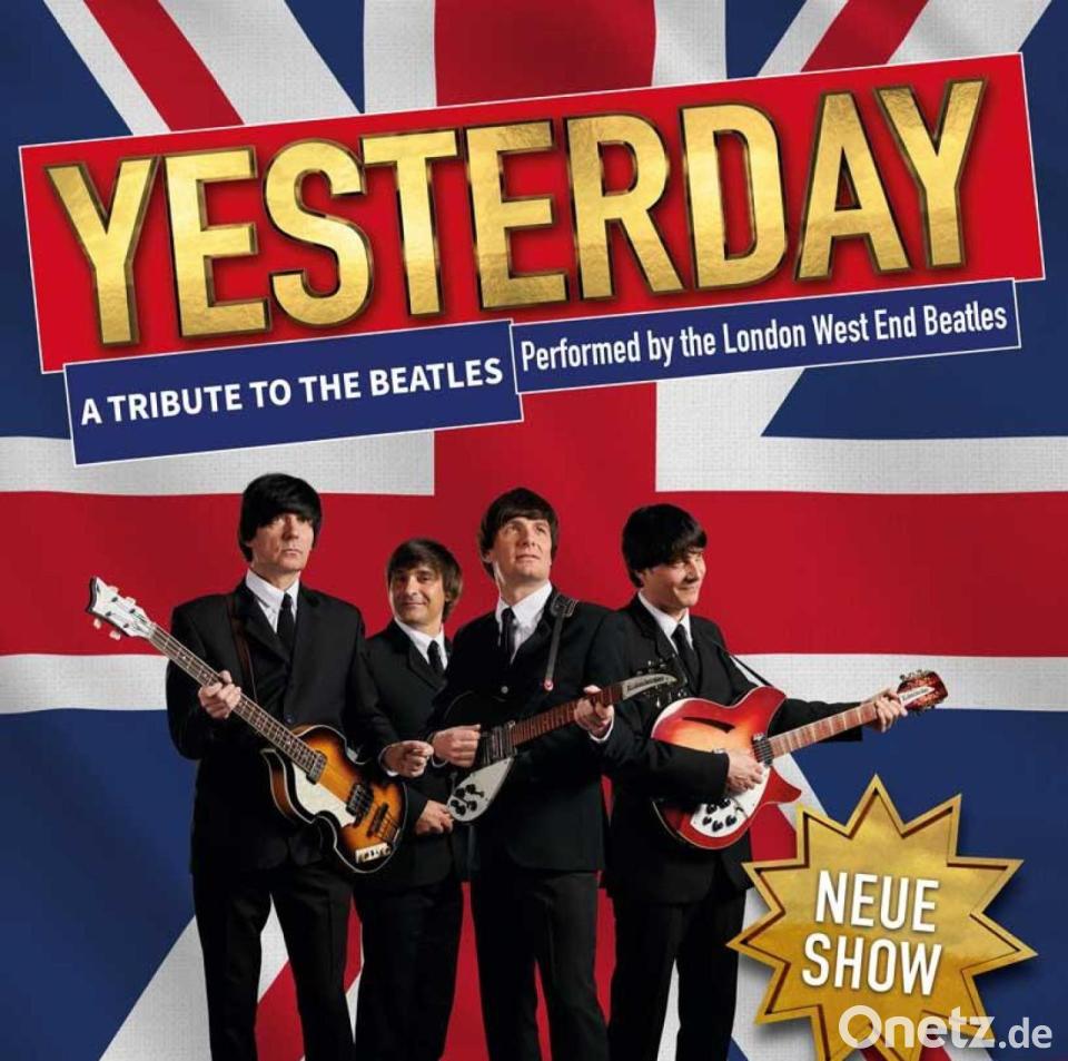 Kaum eine Band hat die Musikwelt so nachhaltig geprägt wie die Beatles. Ihre Popularität ist seit über 50 Jahren ungebrochen. Die Show "Yesterday - a tribute to the Beatles" bringt die vier Liverpooler endlich zurück auf die Bühne. Vier erstklassige Musiker aus Großbritannien, Frankreich und Deutschland verkörpern John Lennon, Paul McCartney, George Harrison und Ringo Starr so authentisch, dass man sich in einem Konzert der wahren Beatles glaubt. Mit Songs wie Let it be, Help, Penny Lane oder Hey Jude drehen sie mühelos die Zeit zurück. Wenn tausend Zuhörer ihr "Yeah, yeah, yeah" erwidern, ist der Zeitgeist der sechziger Jahre wach, dann liegt ein Hauch von Musik-Revolution in der Luft. Wechselnde Kostüme aus der Beatles-Ära, weltberühmte Songs auf originalgetreuen Instrumenten, täuschend echte Stimmen: All das bietet Yesterday dem Publikum in einem über zweistündigen Konzerterlebnis.