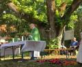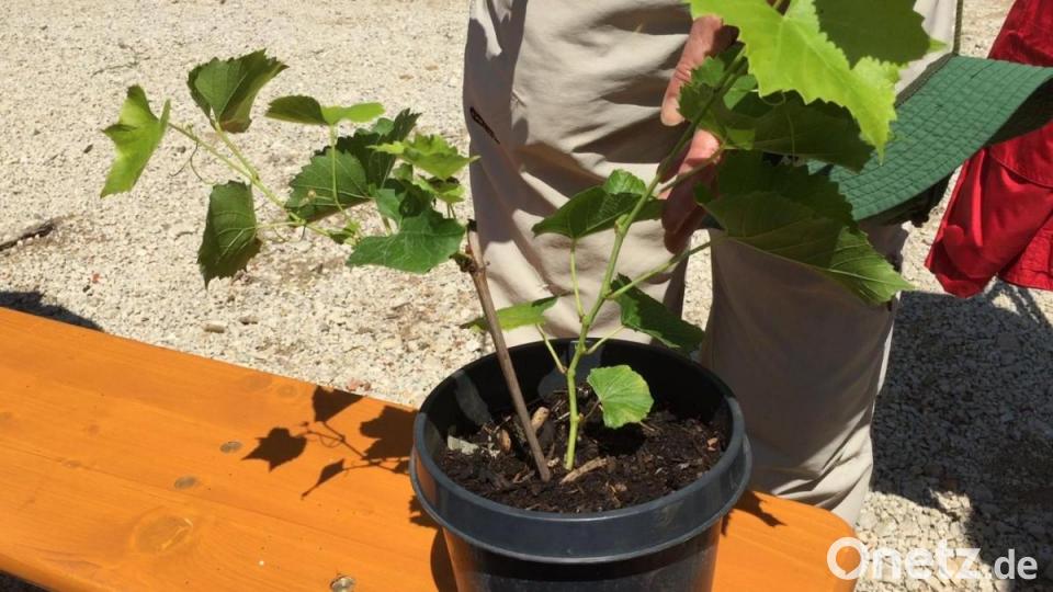 Diesmal nehmen die Schwestern vom Ehemaligentreffen in Lutzmannstein nicht nur Erinnerungen mit. Sie haben einen Blumentopf mit einem Weinstock geschenkt bekommen. Die Rebe ist ein Ableger. Nicht irgendeiner. Sondern einer von dem Weinstock, der heute noch die Überreste des alten Lehrer-Hauses in Lutzmannstein umrankt.
